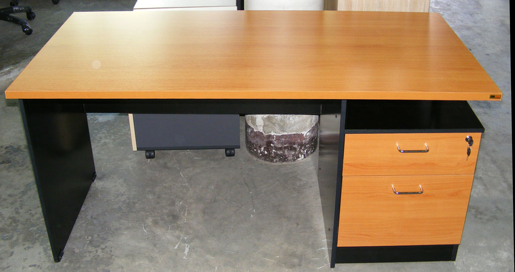ขนาดลึก 60 ซม. ยาว 150. ซม. สูง 75 ซม. ท๊อปโต๊ะไม้ PB ปิดผิวเมลามีน หนา 25 มม. พร้อมตู้ช้างโต๊ะแบบมีล้อเลื่อน