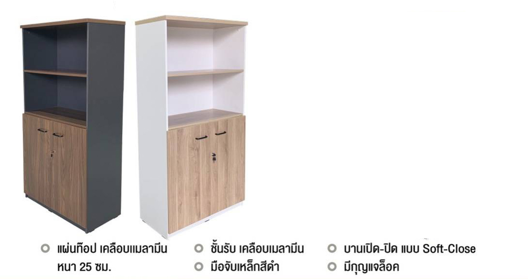 ไม้ทุกส่วน วัสดุไม้PB ปิดผิวเมลามีน หนา 19 มม. ปิดขอบพีวีซี 1 มม. เพื่อความแข็งแรง